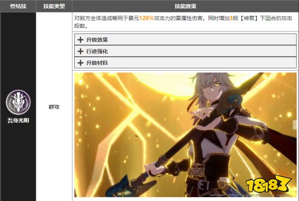 崩坏星穹铁道景元大招叫吾身光明,是他的终结技,普攻是石火流光,战技是紫霄震曜,天赋是斩勘神形,秘技是持箓,格外能力有破阵、绸缪、遣将。