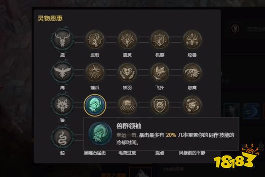1.兽群领袖→幸运触发:爆击最高有20%机率重置你的同伴技能冷却时间。