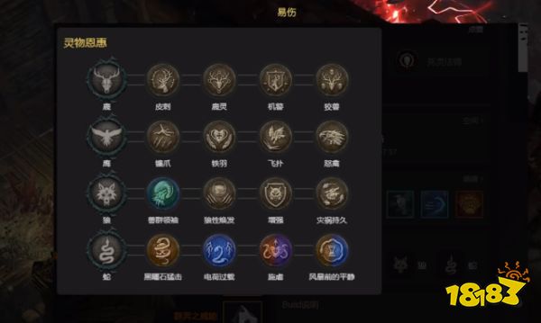 2、德鲁伊可以获取鹿、鹰、狼、蛇四种,把某一种灵物的四个恩惠全部解锁就能签订灵契,额外激活一个恩惠