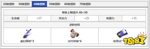 40级晋阶材料:虚幻铸铁*3 + 古代转轴*6 + 信用点*16000