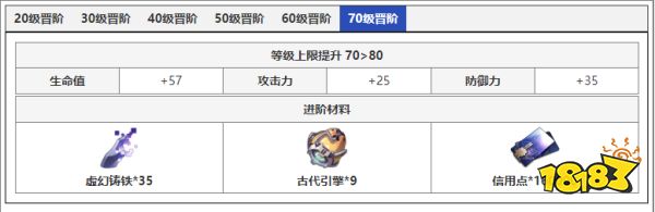 70级晋阶材料:虚幻铸铁*35 + 古代引擎*9 + 信用点*160000