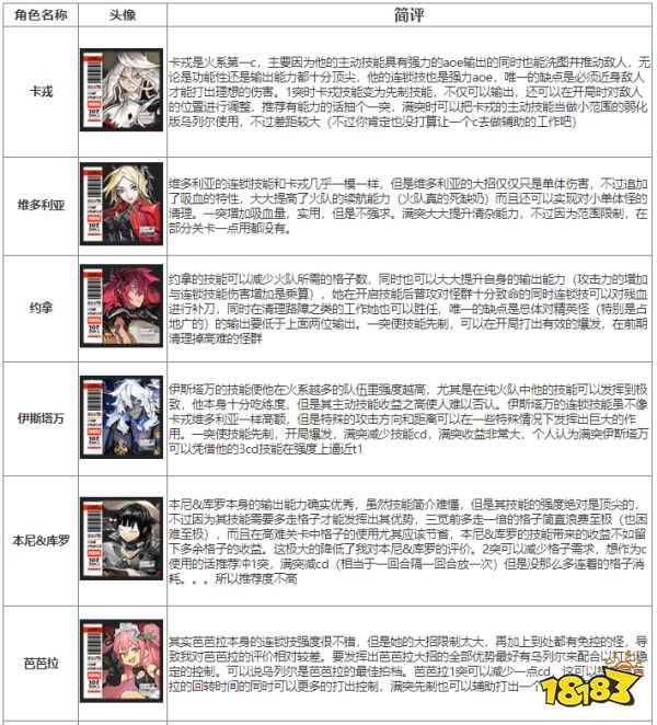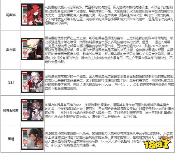 白夜极光火系输出位光灵,有卡戎、维多利亚、约拿、伊斯塔万、本尼&库罗、芭芭拉等,大部分分析来自数据及少量一些实战场景,特殊的功能性我会在文中标出,所有评级以0突为基础并且以强度排列顺序,如果个别光灵在突破后会有质的突变我会在文中标出。