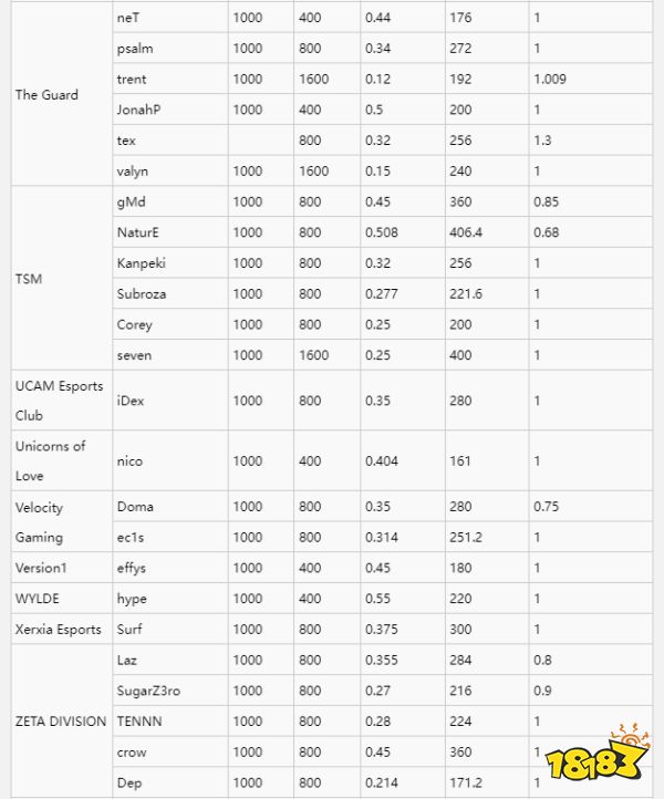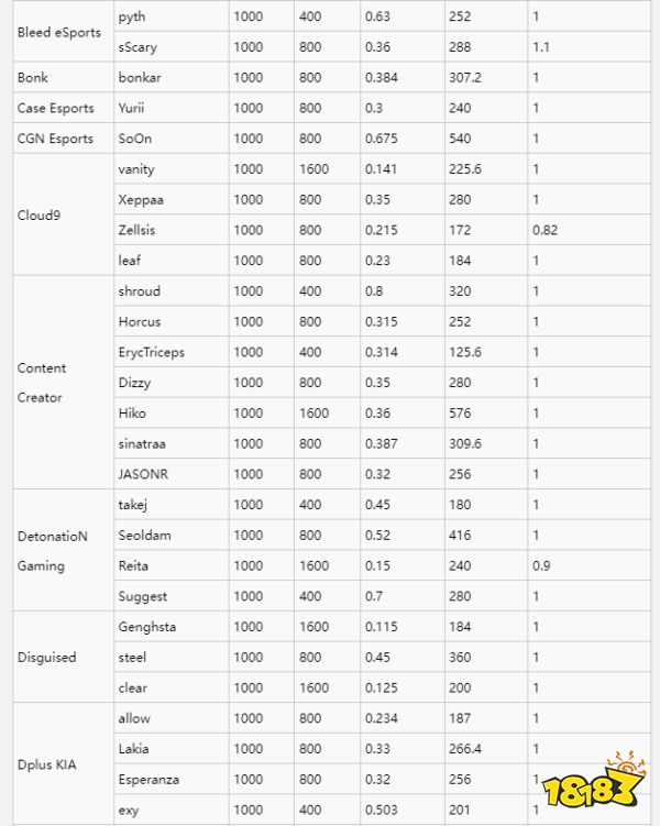 职业选手灵敏度一览