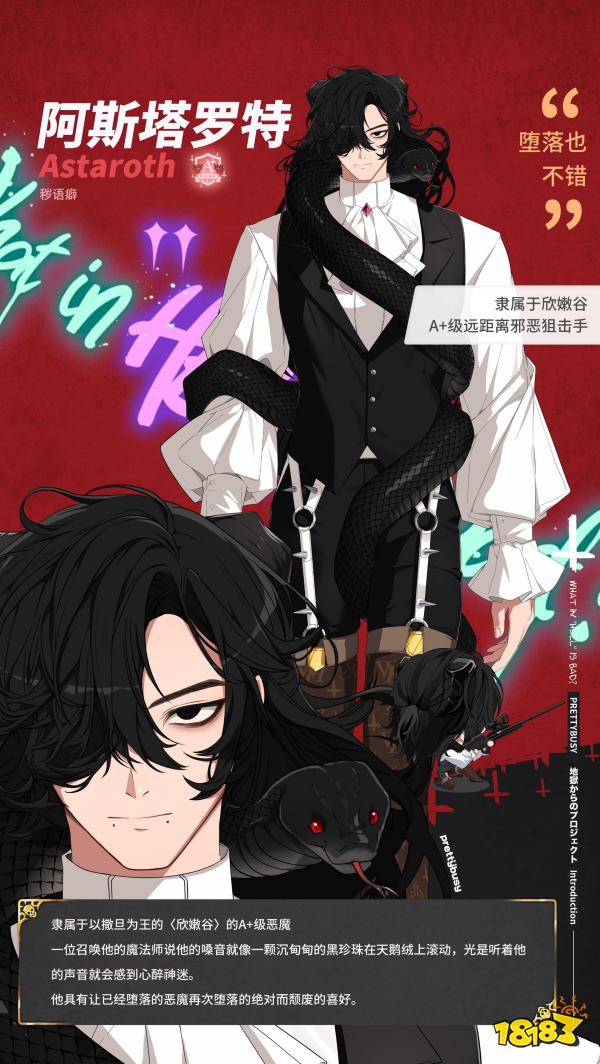 3、阿斯塔罗特是A+级远距离邪恶狙击手,隶属于以撒旦为国王的欣嫩谷地区,他具有让已经堕落的恶魔再次堕落的绝对颓废的喜好。