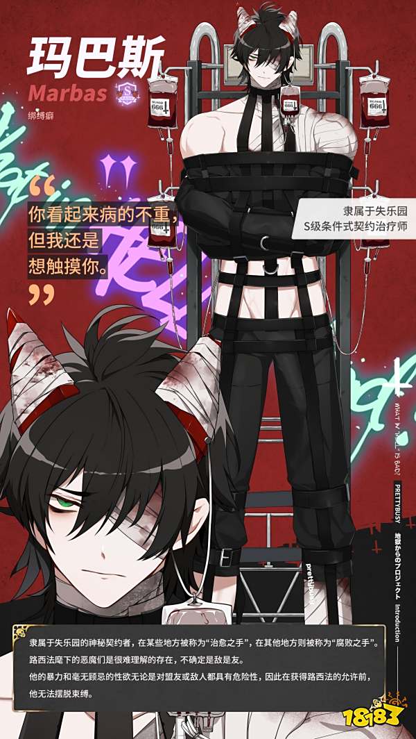 5、玛巴斯是S级条件式契约治疗师,隶属于以路西法为国王的失乐园地区,他在某些地方被称为“治愈之手”,在其他地方则被称为“腐败之手”,无论是对盟友或敌人都具有危险性。