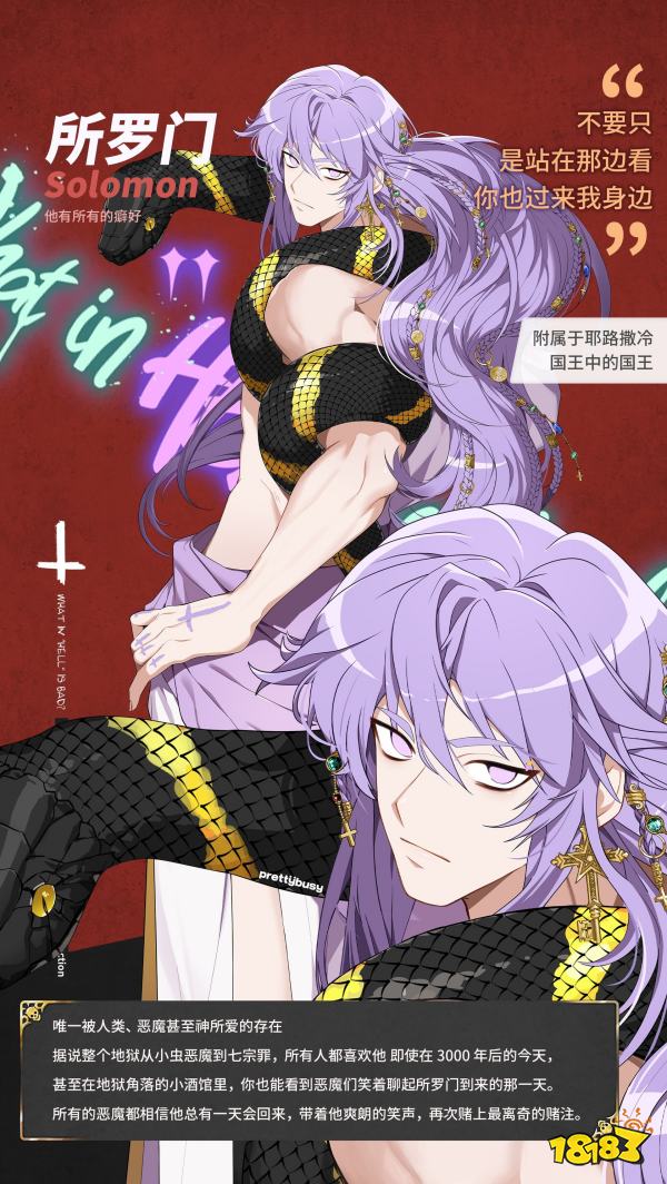 所罗门唯一被人类、恶魔甚至神所爱的存在,据说整个地狱从小虫恶魔到七宗罪,所有人都喜欢他,所有的恶魔都相信他总有一天会回来,带着他爽朗的笑声,再次赌上最离奇的赌注。