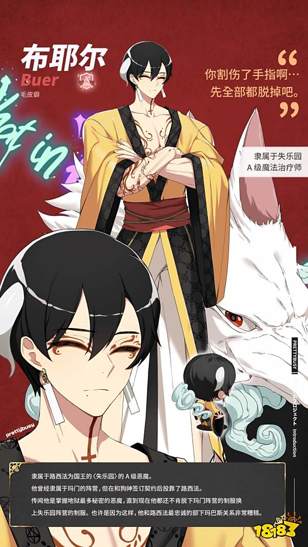 10、布耶尔是A+级魔法治疗师,隶属于以路西法为国王的失乐园地区,传闻他是掌握地狱最多秘密的恶魔,经隶属于玛门的阵营,但在和狗神签订契约后投靠了路西法。