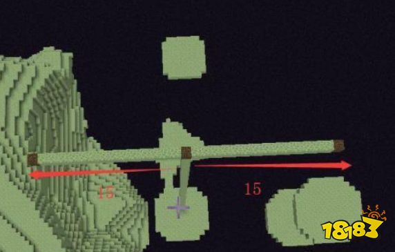 1、首先我们先找到尽量平坦的地方搭45格高的高度。
