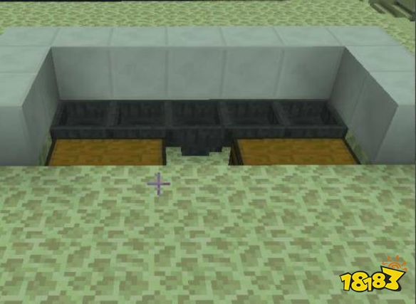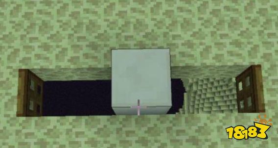 4、中心点提高一格,并且挖空两边的两格,分别放置两个活板门向内打开。