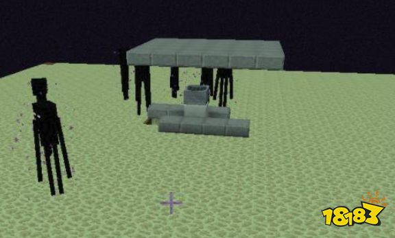 10、上面的中心点上放一个末影螨命名并且放在矿车上,这样小黑塔就完成了。