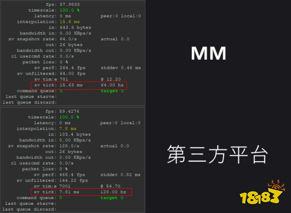 经过CSer的详细对比分析,发现CS2的官方匹配服务器依旧是64tick,而第三方平台则是128tick服务器。