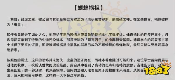 2、繁育星神是鞘翅目的一员,而祂升格为星神的原因是孤独,作为种族的最后一员,无尽的孤独对同类的渴望促使其走上繁育的命途。