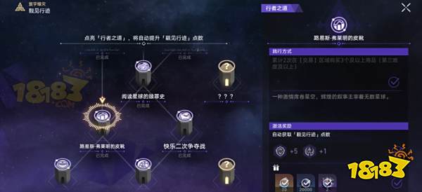 2、而章节解锁需要对应命途的『觐见行迹』点数到达一定点数,并且通关某一位面(难度一也可以)