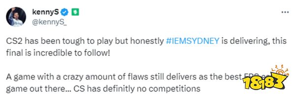 “CS2很难玩,但说实话,IEM悉尼2023举办得很成功。一款存在许多缺陷的游戏仍被呈现出是最好的第一人称射击游戏…CS绝对没有竞争对手。”
