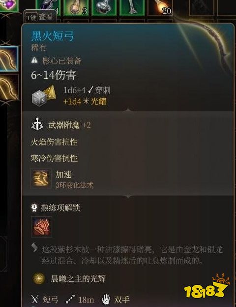 1、黑火短弓获得方法是第一章救下提夫林后再第二章的旅馆处找提夫林铁匠购买,第一章如果屠了营地之类的话就买不到了。