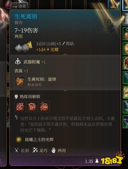 2、神级两用(可双手可单手)长剑,不仅自带表演+1的属性加强甚至还有两个强力光环效果(加精神豁免和攻击鉴定和减对面相应的属性和心灵伤害)。