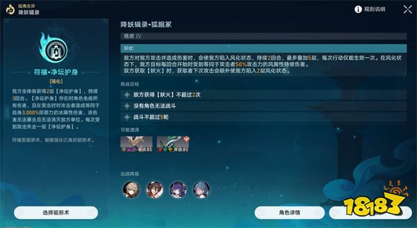 崩坏星穹铁道狐眠冢配队建议大家带个藿藿,因为敌方会疯狂叠风化,所以需要一个高频净化,如果没有藿藿,带个符禳净坛护身的驱邪术,低配阵容可以选择青雀、停云、佩拉、生存位/辅助或输出。