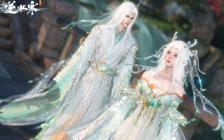 玉泽一语天下知,轻烟日影绕仙境。白泽的神圣凛然在【玉泽凌烟】这套时装中被完美的展现了出来。玉色与青色相互辉映的衣袂中增添以星纱舞动,搭配胸前腰间的刺绣与玉佩纹样,发间的玉色鹿角更添灵动,宛如自然之神,白泽一出,万物生长。