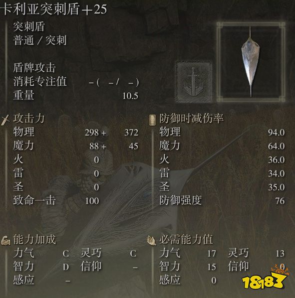 魔法盾牌。可以提升左手盾牌的减伤率,因此双手突刺盾想要使用这个魔法必须要在左手装备突刺盾,然后切换成双手持握。