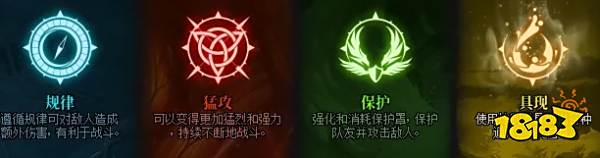 猛攻的左列列前三个天赋为各自给一种buff增加攻速,右列的前三个天赋为各自给一种buff提供减伤,两者的最终天赋在学习到最高级后直接获得持续10s的5%技能伤害,不再消除buff。因此实战中这一页的天赋伤害是稳定的,而速度与减伤满级后只要一直放技能就能稳定持续。