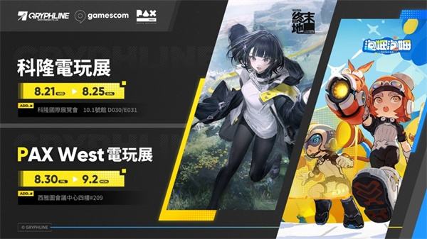 Gryphline 宣布,将携跨平台游戏《明日方舟:终末地》及 PC 和主机游戏《泡姆泡姆》参加即将于 8 月 21 日至 25 日(当地时间)在德国举行的科隆电玩展「Gamescom 2024」。