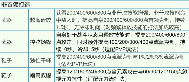 ①越海斫蛟:PVE非首领打造,金品质满覆盖率收益在10%以上,是当前PVE的毕业武器打造(实战可能吃不满覆盖,但收益预计也在8%以上),更适合技能频率比较快的龙吟玄机碎梦等职业。新打造的非普攻技能加成效果与大闹天宫完全不适配,预计与新绝技·终焉裁决比较适配