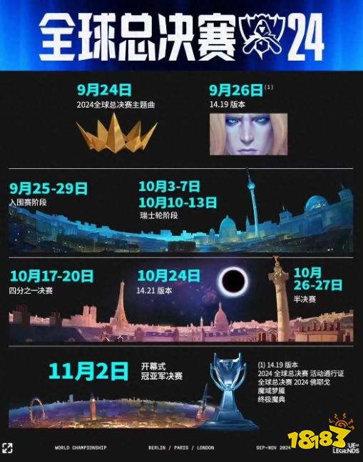 据悉,今年的赛事将在欧洲举办,入围赛阶段、瑞士轮赛阶段都在德国柏林拳头游戏电竞馆进行,淘汰赛阶段在法国巴黎阿迪达斯体育馆,冠亚军决赛在英国伦敦O2体育馆。