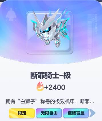 皮肤描述:拥有“白狮子”称号的极致机甲:断罪骑士一极!就让这一击刺破黑暗!