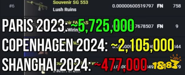 日前瑞典内容创作者Anomaly总结了上一届CS新版本Major期间纪念包和贴纸的销售下滑情况。基于第三方服务和相关报告,他估计2024年上海Major的胶囊销售额与2023年CS:GO BLAST 巴黎Major相比,大致仅为后者的20%左右。(注:该预估数据为目前上海Major胶囊打折前数据,预计胶囊打折后销量会有所上涨,销售额也会增加。