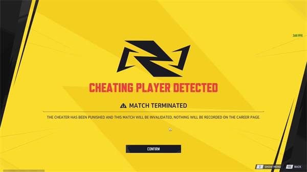 与以往不同,一旦比赛侦测作弊者,系统会立刻弹出黄色提示,随即让所有玩家终止比赛,并通知玩家作弊者已被惩罚,对局过程将失效,战绩数据不会留任何纪录。