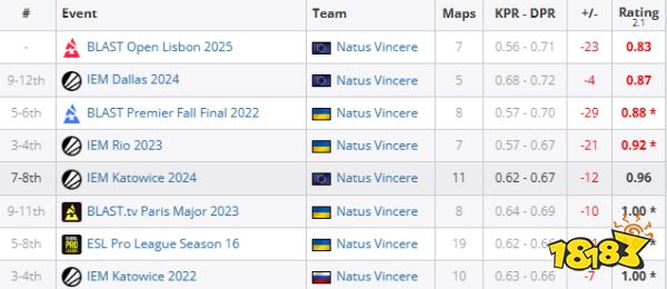这使得他目前为止在BLAST 里斯本公开赛的rating跌至0.83,成为他职业生涯中打出的最差线下赛事数据。
