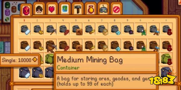 矿物袋专精收纳铜/铁/铱矿石,击杀煤球怪概率掉落初级版本