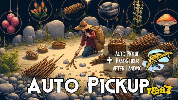 该MOD默认使用小键盘"/"键控制开关,可在游戏内MOD菜单调整参数。其核心功能涵盖三类自动化操作:一是自动拾取自然环境物品,包括木棍、石块、植物等基础资源;二是自动回收重要道具,如着陆后的滑翔翼或离开载具后的骑士V;三是智能管理背包空间,设定容量阈值避免过度拾取。