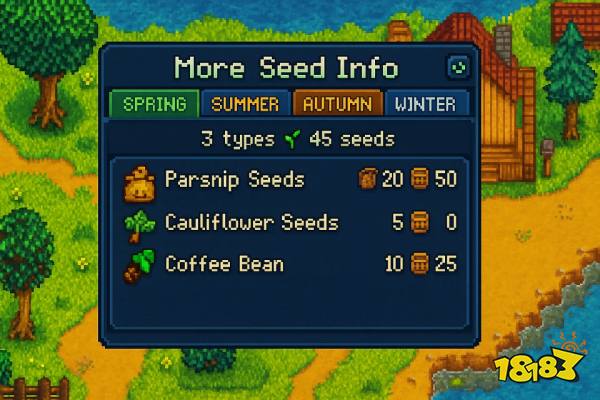 更多种子信息MOD为《星露谷物语》带来了智能化的种子库存管理系统,通过实时追踪与分类展示功能彻底优化了农作物的种植规划。该MOD支持鼠标悬停即时显示种子库存数据,并可按季节筛选已拥有的种子类型,结合自定义快捷键一键打开完整追踪界面,显著减少了重复购买与资源浪费问题。