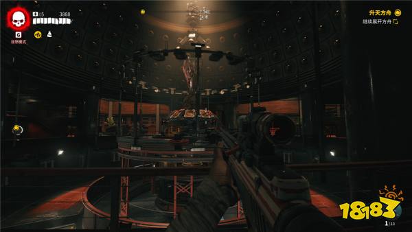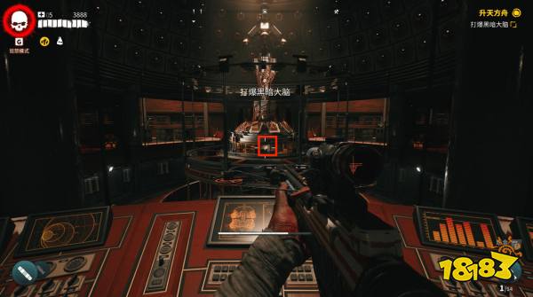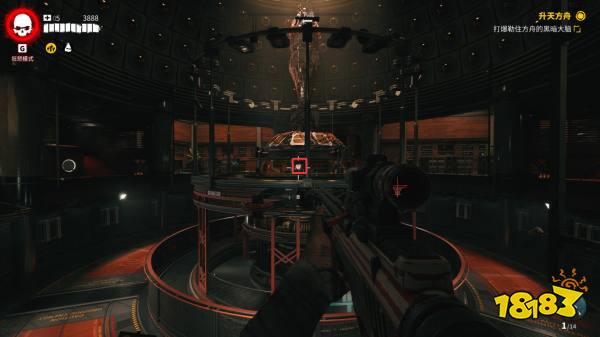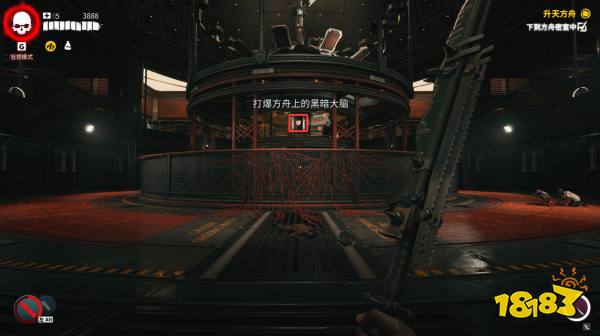 破坏完方舟上部分区域的黑暗大脑,之后来到底层,可以看到有黑暗大脑在玻璃后,旋转的玻璃上有一处破裂的窗口,需要把握好时机,在破裂窗口与黑暗大脑重叠时,使用十字弩直接打爆黑暗大脑。