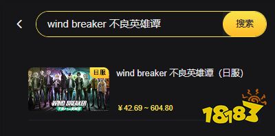 在搜索栏输入wind breaker不良英雄谭日服,选择对应搜索结果中的wind breaker不良英雄谭日服