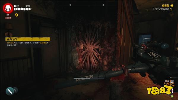 在一层通往二楼的楼梯会遇到"血肉之门"作为障碍物,只有进入狂怒模式才能摧毁(元神,启动),可以通过击杀附近刷新的丧尸来累计怒气值以进入狂怒模式摧毁障碍。