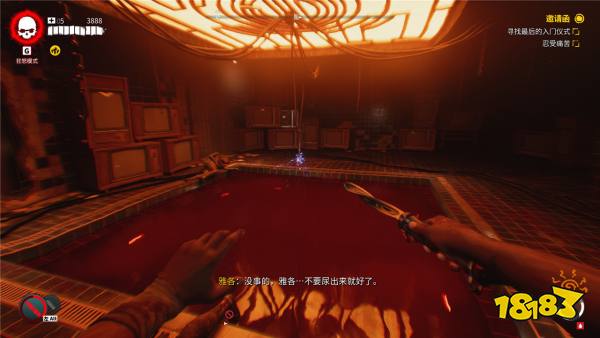 接上电源之后我们再回到地下室,此时可以看到电缆已经通上电了,我们只需要进入血池,靠近电线,被电击至残血即可。