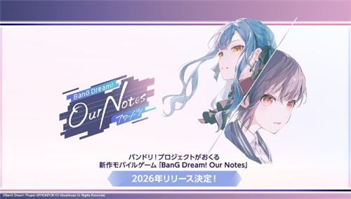 在"卡片战斗!! 先导者15周年Bushiroad新春发表会2026"上,Bushiroad宣布将于2026年推出系列新作手游《BanG Dream! Our Notes》。本作除收录MyGO!!!!!、Ave Mujica等现有乐团外,还将加入millsage与一家Dumb Rock!两支全新乐团。