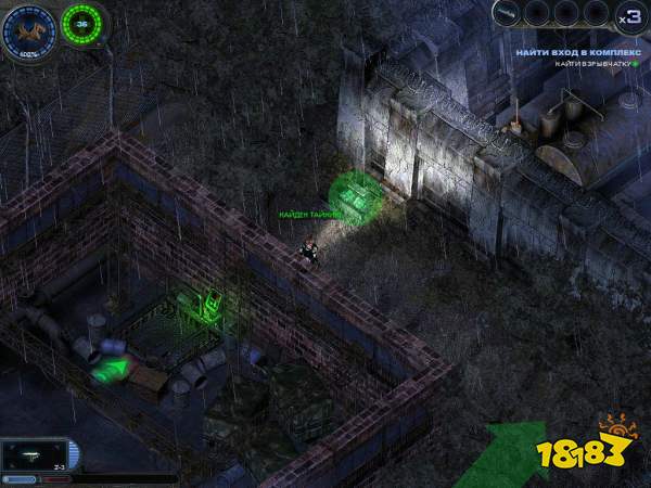 我们的任务是找到炸药。机库外面,两侧各有一个藏匿点。