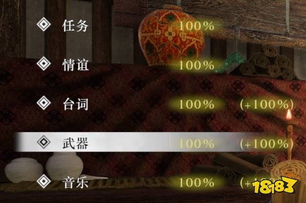 必须要在DLC的酒馆上二楼,回到本体的驿站才能查看目录,其中DLC新加的就是图里的台词/武器/音乐 后面那个括号(+100%)。台词和音乐都是正常剧情自带的不会错过。