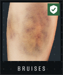 瘀伤(绿色症状)表现为单个较大的或多个中等大小的斑点,通常为蓝色、绿色和黄色的混合色。