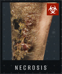 红色坏死症状:表现为几块深黑色的斑点。提示:注意不要将纹身误认为是皮肤标记,尤其不要将其误认为是坏死并误杀他人,因为许多纹身都是用黑色墨水绘制的。寻找明显的艺术图案和人造图案,例如人脸、翅膀、可识别的符号或文字,以确定是否是纹身。