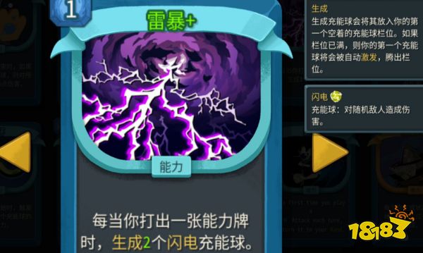 效果:每当你打出 1 张能力牌时,生成 2 个闪电充能球
