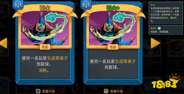 引火 +(升级后):1 费,使另一名玩家生成等离子充能球。消耗。