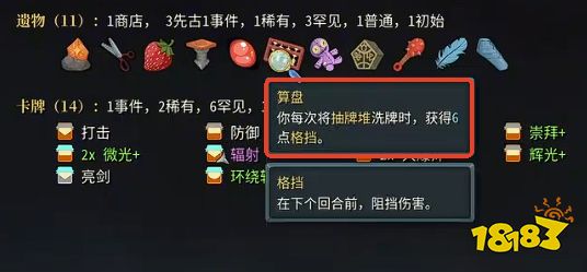 作用:全程卡组里只有一张防御牌,没有任何其他格挡牌,完全靠算盘或转盘来刷循环。