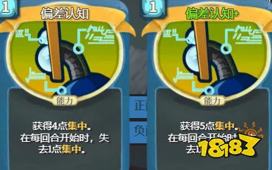 集中是故障机器人的核心机制,相关卡牌包括蓝色稀有攻击超能光束,使用后可能降低集中;蓝色罕见技能耗尽,消耗充能球,可能涉及集中;蓝色罕见能力碎片整理,可获得集中;蓝色稀有能力偏差认知,可获得大量集中但每回合衰减。