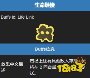 就状态类型而言,生命链接被归类为敌方 BUFF,且不可叠加。在效果机制方面,拥有生命链接状态的敌人死亡后,如果场上还有其他敌人存活,则会在 2 回合后以 50% 生命值复活。这意味着如果不能同时击杀所有拥有生命链接的敌人,战斗将会持续更久,极大地增加了通关的不确定性。