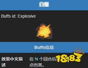 就状态类型而言,这属于敌方 BUFF,且特殊不可叠加。效果机制方面,拥有自爆状态的敌人在 N 个回合后会爆炸,造成固定伤害(通常为 30 点)。需要注意的是,自爆的执行来自状态的计数,而非敌人的意图。常见拥有者通常只有爆炸机会在战斗开始时获得 3 回合的自爆状态。
