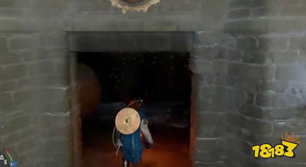 触发机关环节,在平台上找到一盏油灯或火盆,使用点火头盔(长按 B)或火把将其点燃。